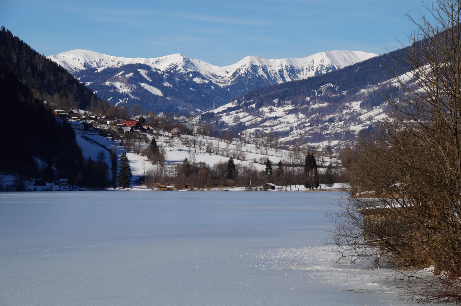 Der Afritzer See liegt im Gegendtal in den Nockbergen im Tal auf 750 m Seehöhe.